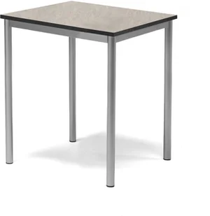 Stół z prostokątnym blatem o właściwościach tłumiących dźwięk. Wyposażony w lakierowaną proszkowo ramę z rur stalowych o okrągłym przekroju. Blat z przyjazną dla środowiska powierzchnią o właściwościach tłumiących dźwięk. Testowany i certyfikowany na zgodność z normą EN 1729. Wiele czynników podwyższa poziom hałasu w klasie: szuranie krzesłami, stukanie o meble, trzaskanie szufladami to jedynie kilka przykładów, które mają na niego wpływ. W rezultacie obniża się koncentracja i wydajność zarówno uczniów, jak i nauczycieli. Stół SONITUS pomaga rozwiązać ten problem dzięki blatowi o właściwościach wytłumiających.