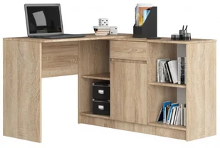 Jest to również komfortowy blat roboczy służący do sporządzania notatek, odrabiania lekcji lub innych obowiązków. Optymalne wymiary mebla zapewniają wygodną pozycję ciała oraz pozwalają na odpowiednie ułożenie nóg w przestrzeni pod blatem. Zaletą, która z pewnością Ci zaimponuje to półki, szafka i szuflada znajdujące się w komodzie dołączonej do biurka. Dzięki temu, że jest to dodatkowy element a nie nie jednoczęściowe biurko można umiejscowić komodę z lewej lub prawej strony w zależności od preferencji. Jest to obszar służący do uporządkowania i właściwej organizacji przestrzeni biurowej, która usprawni codzienną pracę lub naukę.