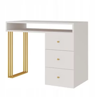 Biurko wolnostojące Klara 100 cm na metalowych nogach. Wykonane jest z płyty meblowej w kolorze kaszmirowym (jasny beż). Złote nogi i uchwyty pięknie podkreś...