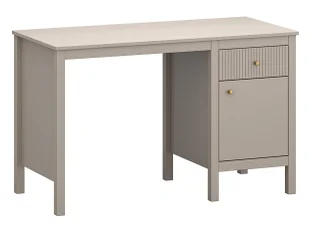 Nowoczesny design: kolor taupe z frezami w formie lameli nadaje biurku minimalistyczny, elegancki wygląd. Funkcjonalne przechowywanie: szafka i szuflada zapewniają dużo miejsca na przechowywanie dokumentów, sprzętu biurowego i innych akcesoriów. Złote uchwyty: