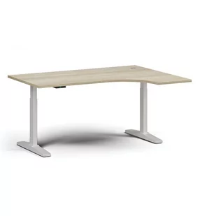 Narożne biurko z regulacją wysokości, 160x120 cm, 2 silniki, L/P, biała podstawa, dąb naturalny