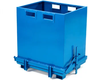 Konstrukcja z mechanizmem automatycznego dolnego opróżniania sprawia, że proces przebiega szybko i sprawnie. Po opróżnieniu, dno zamyka się samoczynnie. Kontener jest wyposażony w tunele na widły, co sprawia, że można go transportować przy pomocy wózka widłowego. Produkt można sztaplować, co zapewnia oszczędność miejsca.