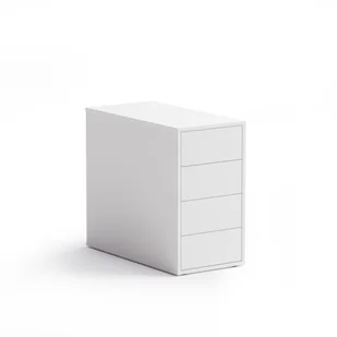 Kontener BLOCK wysokość 710 mm, szerokość 400 mm z 4 szufladami na krótszej stronie. Szuflady konteneru otwierane na dotyk. Mnóstwo miejsc składowania Oferujemy kilka rodzajów szaf. Otwarte szafy mogą służyć jako podręczne biblioteki. Szafka z szufladami na krótkim boku działa jako kontener.