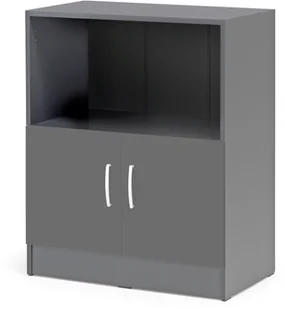 Prosty i świeży design oraz kilka kolorów laminatu do wyboru sprawia, że szafę łatwo wkomponować w niemal każde otoczenie. Produkt sprawdzi się w wielu środowiskach, takich jak biura, archiwa, pokoje spotkań i recepcje. Częściowo zamknięty design pozwala ukryć zawartość dolnych półek.