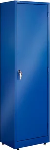 Szafa Smart, 1900x530x400 mm, niebieski, niebieski. Wąska i wygodna szafka do przechowywania do ciasnych przestrzeni w biurze. Szafka wyposażona w dwie regulowane półki, regulowane nóżki, obrotową rączkę i zamek trzypunktowy z dwoma kluczami. Bardzo wąska. 4 regulowane półki.