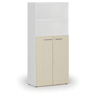 Szafa biurowa kombinowana PRIMO WHITE, drzwi na 3 poziomach, 1781 x 800 x 420 mm, biały/brzoza
