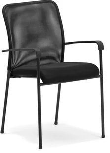 Siedzisko jest grubo wyściełane i delikatnie zaokrąglone dla większego komfortu. Siedzisko tapicerowane tkaniną, oparcie z siatki, które zapewnia dobry przepływ powietrza i doskonałą wentylację. Siedzisko i oparcie spoczywają na smukłej, ale stabilnej ramie ze stali. Podłokietniki z tworzywa sztucznego. Podłokietniki zapewniają dodatkowy komfort, redukując napięcie w ramionach, szyi i barkach, dzięki czemu użytkownik siedzi wygodnie przez całe spotkanie i może spokojnie skoncentrować się na jego treści.