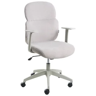 Fotel biurowy z regulowaną wysokością. To eleganckie krzesło biurowe łączy w sobie styl i wygodę dzięki miękkiej tapicerce w jasnym, szarym odcieniu, który pasuje do każdego wnętrza. Obficie wyściełane siedzisko i oparcie tworzą przytulną atmosferę, dzięki czemu długie godziny przy biurku stają się znacznie bardziej komfortowe. Regulacja wysokości pozwala znaleźć idealną pozycję, a funkcja odchylania umożliwia relaks i chwilę odpoczynku. Łagodne zaokrąglenia i pluszowa faktura sprawiają, że krzesło ma nowoczesny, przytulny charakter i świetnie sprawdzi się w domowym biurze.