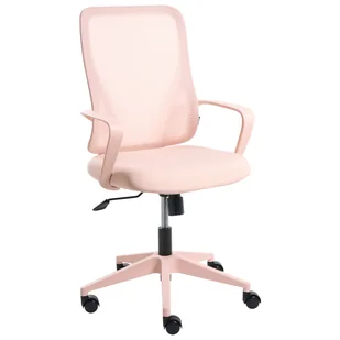 Krzesło biurowe. Kolor główny: Różowy. Odcień: Pastelowy róż. Rodzaj materiału: Tkanina. Materiał: Siatka. Materiał dodatkowy: