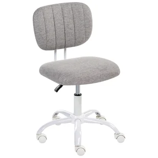 Obrotowe krzesło biurowe bez podłokietników. To stylowe krzesło biurowe to idealny dodatek do home office lub pokoju dziecięcego, łączący nowoczesny wygląd z codzienną funkcjonalnością. Tapicerowane miękką tkaniną z siedziskiem z pianki, zapewnia wyjątkowy komfort podczas długich godzin pracy lub nauki. Pneumatyczna regulacja wysokości oraz płynnie działająca obrotowa podstawa z kółkami pozwalają na łatwe dopasowanie w zależności od potrzeb i swobodne przemieszczanie się. Szczegóły: Typ produktu: