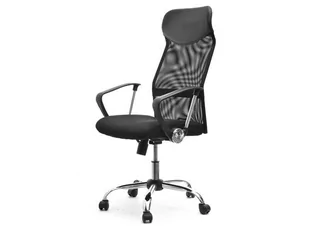 cechy funkcja bujania, obrotowe siedzisko, podłokietniki - tak, podstawa centralna z kółkami, regulowana wysokość, zagłówek - tak Kolorystyka kolor podstawy: chrom kolor siedziska: czarny przeznaczenie biuro, lokal usługowy, pokój dziecka, pracowania w domu styl wnętrzarski współczesny Wymiary i waga długość: 60 cm szerokość: 63 cm wysokość: