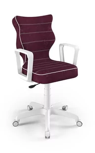 Krzesło młodzieżowe Norm tkanina Visto kolor fioletowy Model Norm dopasowany do biurek o wysokości 70-82 cm. Krzesło obrotowe dla młodzieży jest ważnym elementem wyposażenia pokoju każdego nastolatka. Przygotowaliśmy dla naszych Klientów model Norm, którego siedzisko zostało wyprofilowane w ergonomiczny sposób, dzięki czemu użytkownik zyskuje maksimum wygody. Jesteśmy pewni, że nasz produkt spełni Twoje oczekiwania. Co wyróżnia krzesło obrotowe młodzieżowe Norm? • Ergonomiczne siedzisko wykonane z tworzywa sztucznego, • Stałe podłokietniki, również wykonane z tworzywa sztucznego, w białym kolorze • Blacha siedziska posiada stalową dźwignię prostą, dzięki czemu krzesło można sprawnie regulować, • Kolumna w postaci podnośnika gazowego ze stali oraz tworzywa sztucznego, • Teleskopowa osłonka na podnośnik gazowy, • Miękkie, białe kółka Zdrowe plecy, maksimum komfortu Wklęsło - wypukła forma oparcia zapewnia prawidłowe ułożenie kręgosłupa, dając użytkownikowi maksymalne odciążenie kręgosłupa.