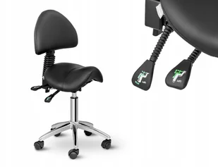 Uniwersalne krzesło siodłowe Berlin Black z obrotowymi kółkami usprawni pracę profesjonalistom z branży kosmetycznej, a także przyda się w domowym użytku. Produkt niemieckiej marki Physa wykończony został czarną tapicerką z ekoskóry, dzięki czemu pasować będzie do wystroju większości salonów, gabinetów oraz pracowni. Ergonomiczny kształt siodła zapewnia wygodę siedzenia, a wysokość (55-69 cm) oraz nachylenie oparcia (90-120°) dopasujesz do użytkownika. Stelaż oraz podnóżek wykonano z wysokiej jakości chromowanej stali nierdzewnej; wytrzyma obciążenie do 150 kg.