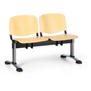 Drewniana ławka do poczekalni ISO, 2-siedziska, chromowane nogi