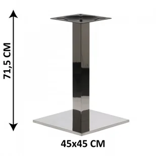Podstawa stolika z nakładką ze stali nierdzewnej, obciążnik z tworzywa sztucznego. Przekrój elementu dolnego 45x45 cm. Noga o przekroju 8x8 cm.