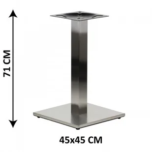 Podstawa stolika z nakładką ze stali nierdzewnej, obciążnik z tworzywa sztucznego. Przekrój elementu dolnego 45x45 cm. Noga o przekroju 8x8 cm.