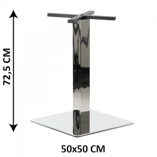 Podstawa stolika z nakładką ze stali nierdzewnej. Przekrój elementu dolnego 50x50 cm. Noga o przekroju 8x8 cm.