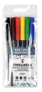 Cienkopisy przeznaczone głównie do pisania, szkicowania i rysowania na papierze. Zestaw 6 kolorów. Ze względu na ergonomiczny, trójboczny kształt są wygodne w użytkowaniu. Zawierają tusz na bazie wody, są spieralne z większości tkanin. Posiadają końcówkę o grubości 0,3mm, która dzięki specjalnej technologii tuszu nie zasycha przez dłuższy czas bez skuwki.