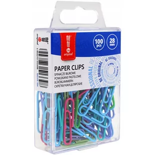 * spinacze biurowe okrągłe MEMOBE * spinacze metalowe, powlekane * wysokiej jakości stal * długość: 28 mm * mix kolorów pastelowych * zaokrąglony kształt * pakowane w przezroczystą plastikową kasetkę * w opakowaniu: 100 sztuk * jednostka sprzedaży 1 opakowanie * marka MemoBe została założona w 1993 roku i dzięki intensywnemu rozwojowi zajmuje kluczowe miejsce wśród producentów z branży artykułów biurowych i szkolnych w Polsce, każdy produkt MemoBe to gwarancja wysokiego komfortu pracy podczas codziennego użytkowania, w produkcji wykorzystywane są tylko materiały wysokiej jakości