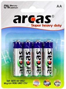 Bateria Zestaw baterii 4 sztuki - AA Arcas bateria cynkowo-węglowa mignon AA 4 szt. mignon bateria 1. 5V R6 ARCAS Super Heavy Duty R6 AA mignon Odpowiednie do zastosowań takich jak piloty zdalnego sterowania, zegary ścienne, budziki, proste oświetlenie takie jak. Na przykład latarki domowe lub reflektory Dzięki wielu ikonom zastosowań, ostrzeżenia i instrukcje użytkowania na opakowaniu są łatwe do rozpoznania Dostępne w różnych rozmiarach opakowań Przyjazne dla środowiska, bez metali ciężkich Biegunowość (+/-) jest wyraźnie oznaczona i chroni użytkownika przed nieprawidłowym włożeniem lub zwarciem Stabilne napięcie i niezawodna energia Bateria cynkowo-węglowa o ponadprzeciętnej, długotrwałej mocy wyjściowej - w porównaniu z innymi konwencjonalnymi bateriami cynkowo-węglowymi. Also suitable for use in extreme temperature fluctuations Electrochemical system: