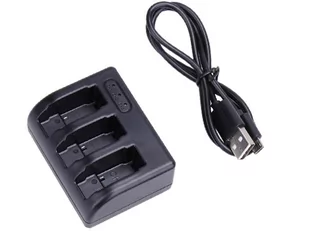 Mini ładowarka procesorowa USB na trzy akumulatory dedykowana do: GoPro: AHDBT-501 (GoPro HERO 5 BLACK / HERO 6 BLACK) oraz ich zamienników ZALETY: Bardzo małe wymiary (2,5 x 4,9 x 6,5 cm), umożliwiające schowanie ładowarki niemal wszędzie, nawet w kieszeni Trzy porty ładujące, pozwalające na niezależne ładowanie każdego z umieszczonych akumulatorów (akumulatory mogą być ładowane równocześnie lub pojedynczo w dowolnej konfiguracji) Niezależne, trzy diody sygnalizujące stan naładowania każdego z akumulatorów Czas ładowania od 1 do 1,5 h, w zależności od pojemności ładowanych akumulatorów Certyfikaty CE, ISO9001, ROHS gwarantują najwyższą jakość produktu Ładowarka firmy XREC Przedmiotem sprzedaży jest mikroprocesorowa ładowarka USB nowej generacji, dedykowana do oryginalnych akumulatorów oraz ich zamienników o dowolnej pojemności. Ładowarka została zaprojektowana idealnie na wymiar akumulatora, dzięki temu akumulator nie wypada i nie leży luźno w uchwycie, co ma miejsce w ładowarkach uniwersalnych. Ładowarka umożliwia szybkie i bezpieczne ładowanie bezpośrednio z komputera, ładowarki sieciowej lub powerbanku, trzech, dwóch lub jednego akumulatora poprzez gniazdo micro USB.