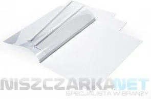 Gotowe okładki do termobindowania Specjalny pasek kleju umieszczony w grzbiecie Wierzchnia okładka przezroczysta folia 150 mic, tylna błyszczący karton Chromo Lami 250 g/m 2 Umożliwiają oprawę dokumentów o grubości do 80 arkuszy A4 (80 g) Pakowane po 10 szt.