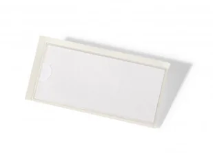 Wysokiej jakości kieszenie samoprzylepne z przezroczystej folii, do oznaczania teczek, skoroszytów, segregatorów, szafek na dokumenty, półek itp. Z etykietami do zadrukowania. Materiał: Polipropylen (PP).Etykiety można opisywać komputerowo W woreczku znajduje się 10 sztuk etykiet blanko. Rozmiar wew. etykiet:74 x32 mm (SxW).