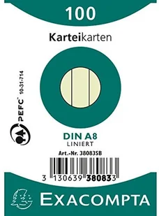 Exacompta 38083B Karty indeksowe, w linie, A8, 55 x 74 mm, fiszki nadają się do szkoły, nauki słówek oraz notatek pasują do pudełka na fiszki typu Bunnybox 100 sztuk kolor zielony