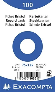 Exacompta Exacompta Bristol zwykłe karty płytowe, 75 x 125 mm - białe, opakowanie 100 sztuk 10501E
