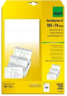 Sigel LP701 fiszki do obustronnego nadruku, karton 185 g, format A7, 160 sztuk, białe LP701