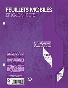 Calligraphe 2084C Zestaw luźnych kartek perforowanych w folii (marka Clairefontaine) – Format: 17x22 cm – 200 stron w dużą kratkę – Papier 90 g