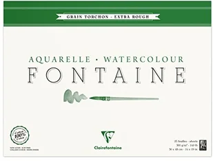Clairefontaine 96431C Blok akwarelowy klejony z 4 stron Fontaine – 25 arkuszy białego papieru akwarelowego 100% bawełna, faktura szorstka, 36x48 cm 300 g