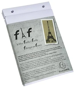 Pudełko z 5 wkładkami do podkładki FAF blank, 21x13,5cm Klocki Exacompta "FAF Wkład uzupełniający do bloku podstawowego 60 g/m²- z mikroperforacją- 2-krotnie perforowany Wkład do podkładki FAFZawartość: 5 sztuk w pudełku Po przetestowaniu te podkładki do pisania z wymiennymi wkładami stały się niezbędne dla każdego użytkownika. Poręczny i lekki: idealny towarzysz do szybkiego robienia notatek z dala od biurka. papier o gramaturze 60 g.