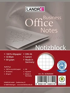 Landré landre 100050282 notatnik recyklingu, DIN A4, w kratkę, perforowane, 60 G/M papier z recyklingu, zestaw 10 szt., 50 arkuszy 100050295
