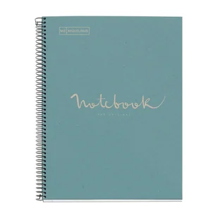 Notatnik z recyklingu w matowych, pastelowych kartonowych okładkach z oprawą ringową. Naturalny niebielony papier 80 g, 80 kartek. Wyróżniony nagłówek, perforacja umożliwiająca wpięcie do segregatora, mikroperforacja ułatwiająca wyrywanie kartek. Strony wewnętrzne: w linie.