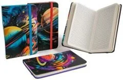 Notes A6 Space MIX. notes z gumką, atrakcyjne motywy, 80 kartek, papier kwadratowy, rozmiar notesu 8,5 x 14 cm, miks motywów