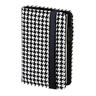 Notes A6 na gumkę kratka biało-czarny NP-60MDI-DROPS ➡️ Firma i usługi/Biuro i Reklama/Reklama/Akcydensy (poligrafia)/Bloczki, notesy ✔️ Okładka ręcznie wykonana z dwuwarstwowego poliuretanu. Zewnętrzna warstwa jest z zamszowego wypukłego zamszu przyjemnego w dotyku. Okładka jest w wersji kolorystycznej czarno-białej we wzór pepitka. Wnętrze wykończone czarnym zamszem. Seria Modena posiada zapięcie na gumkę.