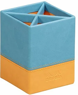 RHODIA 318817C – Kubek na długopisy Turkusowy – 8 x 8 x 11 cm – Pomarańczowe przeszycia siodłowe – Zewnętrzna powłoka z ekoskóry – Kolekcja Home Office rama – Organizacja i przechowywanie w biurze