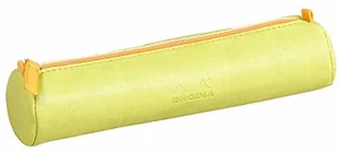 RHODIA 318896C – Okrągły piórnik Rhodiarama w kolorze anyżowym – 21,5 × 5,5 cm – pomarańczowe przeszycia – jasnokremowa podszewka z jerseyu – skóra ekologiczna – do przechowywania przyborów