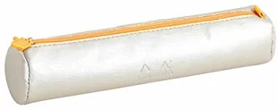 RHODIA 318891C – Okrągły piórnik Rhodiarama w kolorze srebrnym – 21,5 × 5,5 cm – pomarańczowe przeszycia – jasnokremowa podszewka z jerseyu – skóra ekologiczna – do przechowywania przyborów