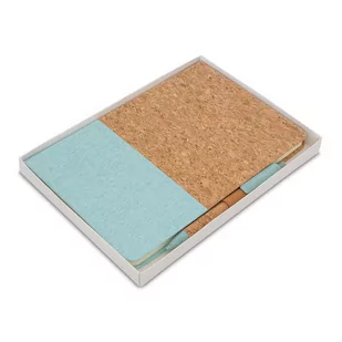 Elegancki notes łączący naturalny korek z płótnem. Rozmiar A5, 80 kartek w linie ( gramatura70 g/m2). Wyposażony w długopis wykonany z korka, słomy pszennej i PP. Pakowany w pudełko.