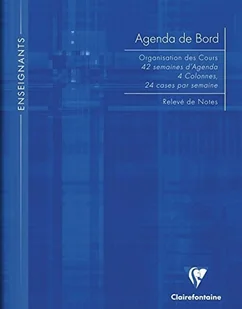 Clairefontaine 9059C Dziennik rembordowany sztywny – Format: A4 21x29,7 cm – 144 strony – 4 kolumny (24 pola/tydzień) – 42 tygodnie – Papier biały 90 g – Okładka kartonowa powlekana – Kolor losowy