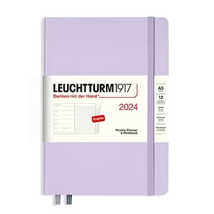 Planer tygodniowy z notatnikiem - 12 miesięcy - 2024 - liliowy (Lilac) Planer Leuchtturm1917 tygodniowy pionowy to wysokiej klasy produkt w rozmiarze A5 i twardej oprawie. Papier ma odcień kości słoniowej, jest bezkwasowy i bez optycznych wybielaczy, idealny do pisania piórem. Zaprojektowany, by pomóc wykorzystać każdy dzień i o niczym nie zapomnieć. Na każdej podwójnej stronie znajduje się strona z tygodniem kalendarzowym po lewej oraz strona w linię na notatki po prawej. Planer tygodniowy rozpoczyna się od stycznia i obejmuje 12 miesięcy (od 01.2024 do 12.2024).