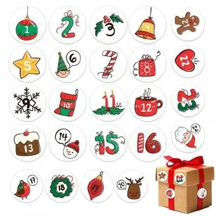 Naklejki Na Kalendarz Adwentowy Do Kalendarza Adwentowego Świąteczne 24Szt