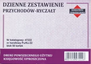 Przedmiotem transakcji jest 1 blok druku dowód wewnętrzny przychodów. Druk ten jest przeznaczony do ewidencjonowania przychodów nieudokumentowanych w ciągu 1 dnia, z rozbiciem na stawki opodatkowania podatkiem ryczałtowym Druk ten jest przezaczony do księgowania w ewidencji przychodów dla ryczałtowców jako odrębny dokument księgowy. Musi być opatrzony numerem kolejnym i datą wystawienia oraz mieć naniesioną pozycję księgowania w księdze.
