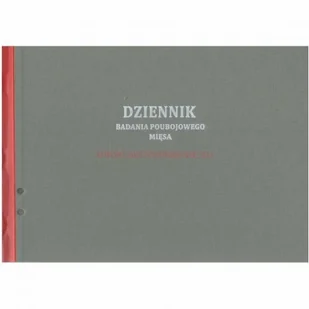 Przedmiotem tej transakcji jest: Dziennik badania poubojowego mięsa zał. nr 2 [PIW-102] Wykonany w formie księgi A4, objętość 100 kartek - 200 ponumerowanych stron. Bardzo mocna oprawa twarda, dziurki do oplombowania. Księga jest prowadzona w rzeźni, jej sposób prowadzenia określa zarządzenie Głównego Inspektora Weterynarii GIWPR 02010-4/2017, wzór księgi określa załącznik nr 2.