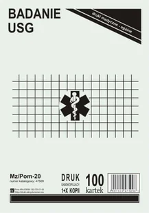 Przedmiotem tej transakcji jest druk Badanie USG [Mz/Pom-20] wykonany na papierze samokopiującym oryginał + 1 kopia (papier biały + żółty), nadruk w kolorze czarnym. format A5, oprawa blok, objętość 100 kartek.