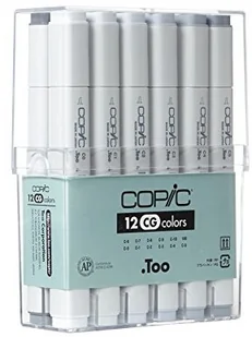 profesjonalne markery Copic Classic dla grafików, architektów, projektantów, wymagających twórców można go napełnić 8-krotnie tuszem z pojemnika; napełnianie tuszem odbywa się metodą kropelkową przez otwór po wyjęciu szerokiej ściętej końcówki; do wyjmowania końcówek służy specjalna penseta dostępna w naszym sklepie markery wykonane są z najwyższej jakości materiałów odpowiednie oznaczenie kolorowymi skuwkami z nazwami kolorów zapewnia szybką i dokładną identyfikację poszczególnych markerów marker z dwiema wymiennymi końcówkami: szeroka i precyzyjną poprzez użycie neutralnego blendera COPIC Blender można dokonywać tonalnych rozbarwień dzięki nienapełnionym markerom dostępnym w ofercie możliwe jest tworzenie własnych kolorów zestaw 12 kolorów Kolory Szarości CG 100 Black C0 Cool Gray No. 0 C1 Cool Gray No. 1 C2 Cool Gray No. 2 C3 Cool Gray No.