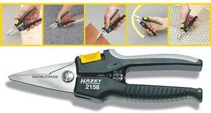 Wyposażenie: Ergonomiczny kształt umożliwia otwieranie i zamykanie blokady jedną ręką $176 Zastosowanie: - Do przecinania cienkich blach, drutów, tworzyw sztucznych, odważników klejonych, wykładzin itd $177 Z blokadą nożyc $178 Dodatkowo z okrągłym ostrzem do ściągania izolacji z drutów (1 lub 1,5 mm2) $179 Uchwyt HAZET wykonany z 2 rodzajów tworzyw $180 Długość całkowita: 194 mm $181 Masa netto: 012 kg