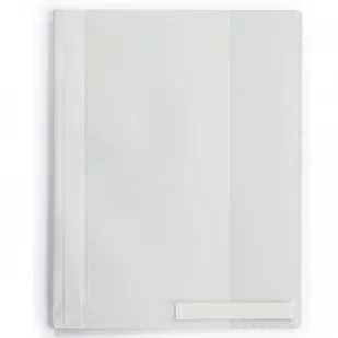 Skoroszyt o specjalnej szerokości do koszulek na dokumenty. Wysoka jakość w codziennym użyciu. Z twardej folii, z przezroczystą okładką przednią, kolorową okładką z tyłu. Mechanika skoroszytowa z tworzywa sztucznego ze specjalnymi zakończeniami. Przezroczysta kieszeń wewnętrzna dla niedziurkowanych dokumentów.